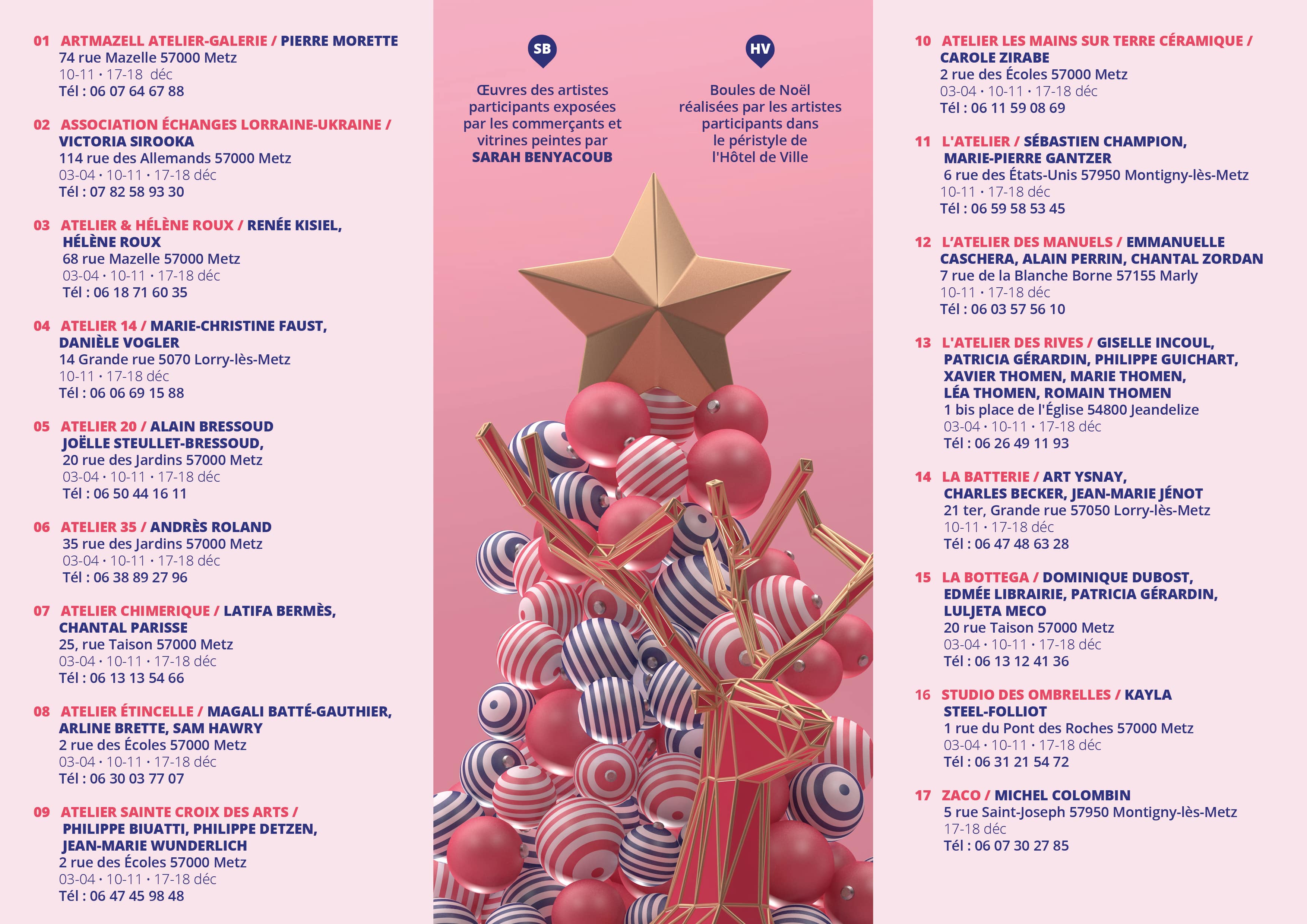 -Lorry-Lès-Metz, Atelier 14 ouvert dans le cadre de "Parcours d'Artistes de Noël" les 12-13 et 19-20 décembre de 14 à 19hDépliant parcours d'artistes et Dépliant Lorry-lès-Metz