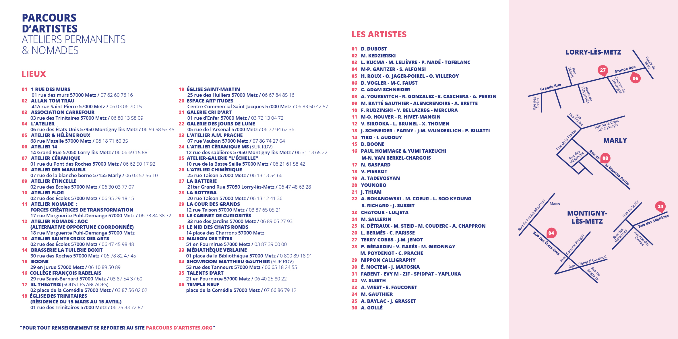 - Lorry-les-Metz au 14 Grand Rue, Parcours d'artistes de Noël le samedi 14 décembre de 14 à 18h, le dimanche 15 décembre de 10 à18h et le samedi 21 décembre de 14 à18h le dimanche 22 décembre de 10 à 18hDépliant parcours d'artistes et Dépliant Lorry-lès-Metz